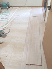 ・湿気等により傷んでいた床板が今後弱くならないように、耐水材ベニヤを下地に使い、底冷え対策として断熱材を敷設してからフローリングを施工しました。
