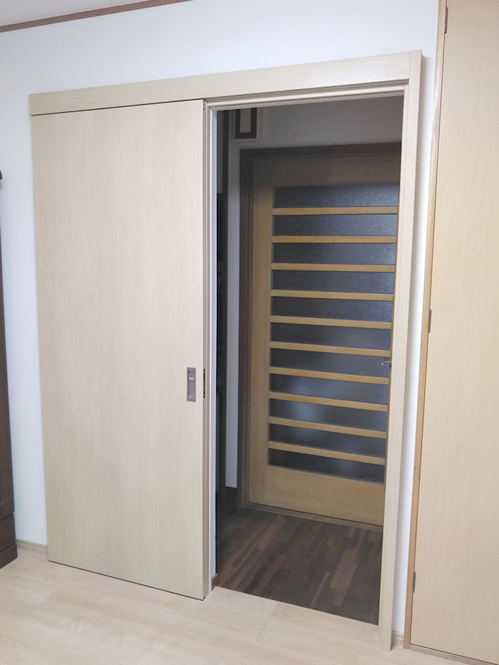 「床が直り、安心しております。扉新設のおかげで行き来がすごくしやすくなりました」とご感想をいただき、こちらも施工してよかったなと思っております。